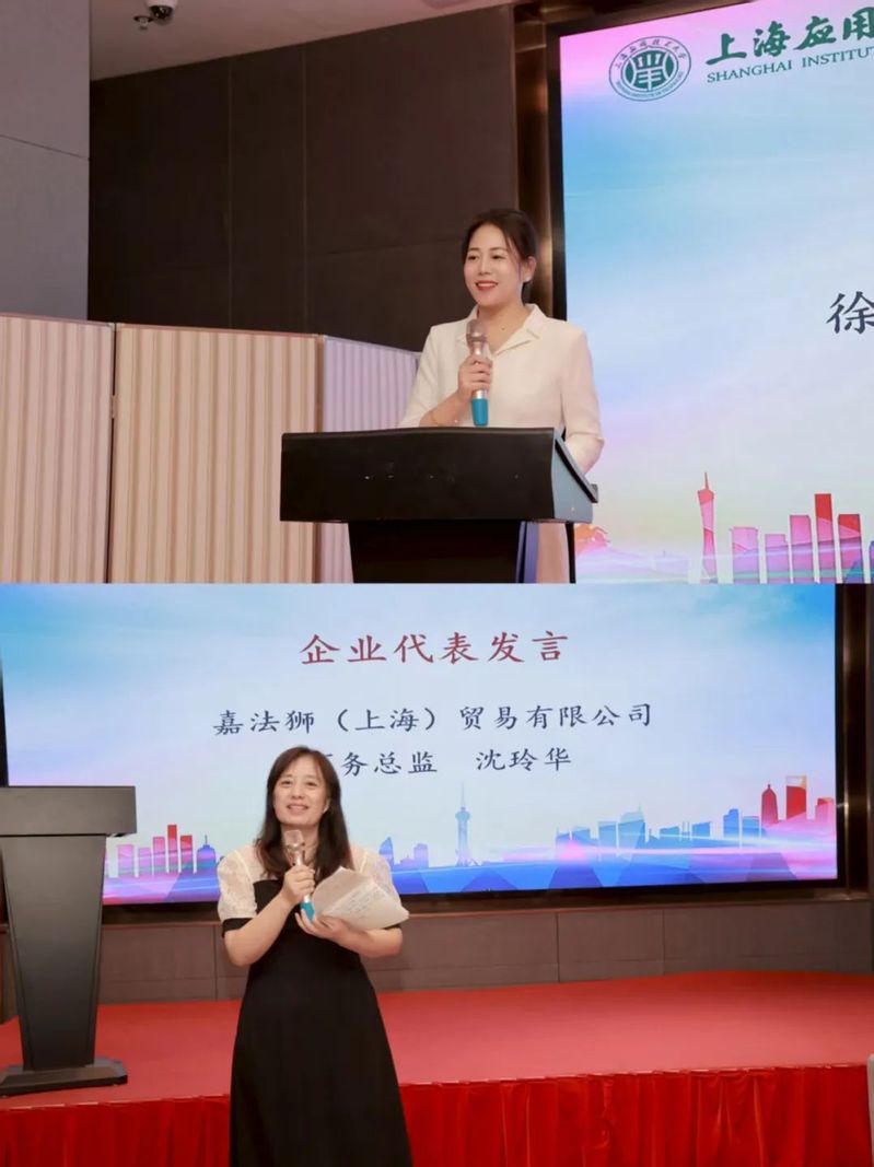 徐州工程学院材料与化工工程学院副院长吴琼代表首批会员高校讲话,她感谢上应大国际化妆品学院一直以来在人才培养、实验室建设、师资培训等方面对兄弟高校的帮助,赞赏“华灼杯”全国高校化妆品产品设计与创新大赛对学生职业胜任力和竞争力的提升,希望此次成立的化妆品专业人才培养校企共同体能够成为化妆品高校和企业的资源汇聚与共享枢纽、就业与产学研合作超级平台以及引领创新、赋能师生的坚强后盾。嘉法狮(上海)贸易有限公司商务总监沈玲华代表会员企业发言,她认为合格的化妆品人才需具备深度与广度并重的T形知识结构,强调行业对人才的多学科知识,特别是化学、生物、皮肤科学、材料学、艺术和营销学的交叉学科知识需求,以及综合能力、创新能力和职业素养的重要性。她赞赏了产教融合的培养模式,呼吁高校、企业与行业联盟携手合作,共同培养复合型人才,以跟上甚至超越行业发展。