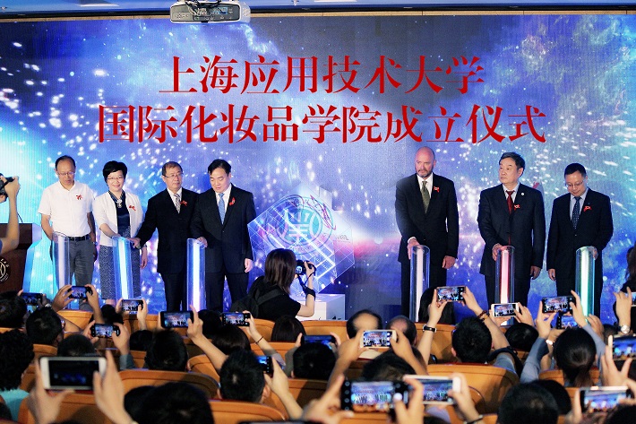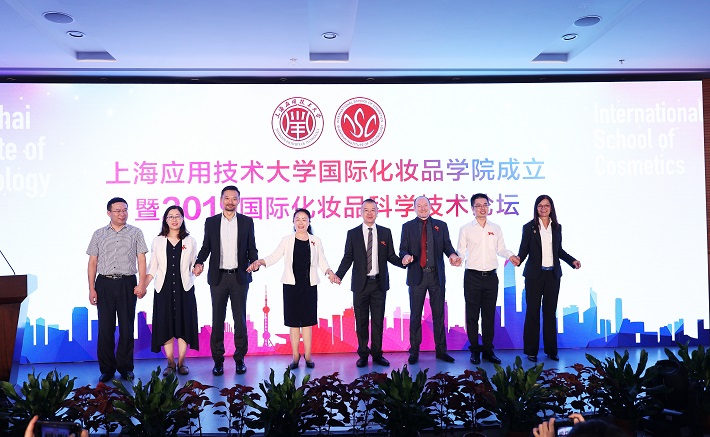 2019年9月17日,上海应用技术大学国际化妆品学院成立仪式暨2019国际化妆品科学技术论坛在奉贤校区举行,中国香料香精化妆品工业协会理事长陈少军,奉贤区区委书记庄木弟,上海市教育委员会学位办主任束金龙,我校党委书记刘宇陆,校长柯勤飞,校党委副书记何星海,校党委副书记、副校长王瑛,副校长张锁怀,新西兰奥克兰理工大学副校长墨菲(Nigel Charles Murphy),上海日用化学品行业协会执行会长金坚等各级领导和嘉宾出席仪式。来自化妆品行业的中外企业代表和校友约200余人共同参加。
