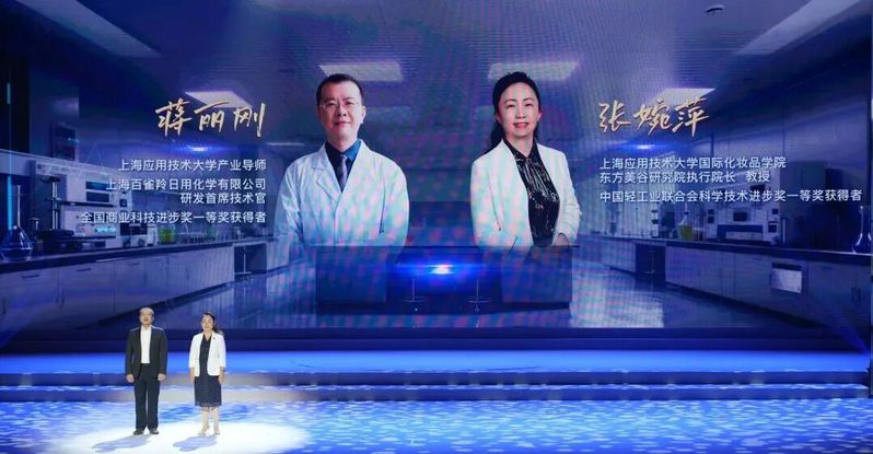 现场,百雀羚日用化学有限公司研发首席技术官蒋丽刚以“产业导师”身份,与上应大香料香精化妆品学部张婉萍教授共同登台,通过微讲述生动呈现化妆品技术与工程专业产教融合的特色与亮点。